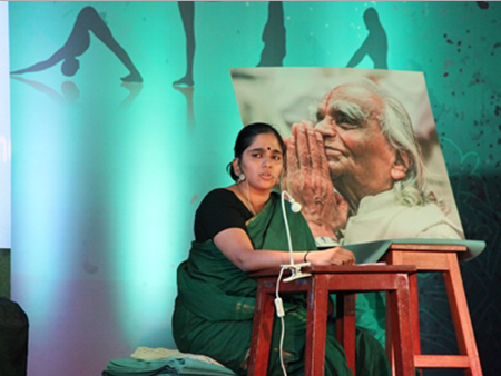 Abhijata Sridhar Iyengar - wnuczka B.K.S. Iyengara, rozpoczęła studiowanie jogi w wieku 16 lat bezpośrednio pod przewodnictwem Gurujiego, swojej cioci Geety Iyengar oraz wujka Prashanta Iyengar. Obecnie jest nauczycielką w stopniu Senior, akredytowaną przez Ramamani Iyengar Memorial Yoga Institute (RIMYI) w Punie (Indie), gdzie też na co dzień uczy. Posiada magisterium z bioinformatyki Uniwersytetu w Punie. Towarzyszyła swojej ciotce - Geecie Iyengar na międzynarodowych konwencjach jogi w Wielkiej Brytanii, Australii, Niemczech i USA. Podróżowała również z samym Gurujim do Rosji i Chin. Niezależnie prowadziła również konwencje jogi i warsztaty we Francji, Indonezji, Hiszpanii, Belgii, Niemczech i na Filipinach, a 2014 roku - także w Polsce. Abhijata znalazła dla nas czas na krótką rozmowę pomiędzy jednym Joganusasanamem dedykowanym studentom zagranicznym, a drugim dla społeczności lokalnej. Wywiad odbył się 16 grudnia 2016 w bibliotece w RIMYI, gdzie lubił przebywać i spotykać się z uczniami jej dziadek.
