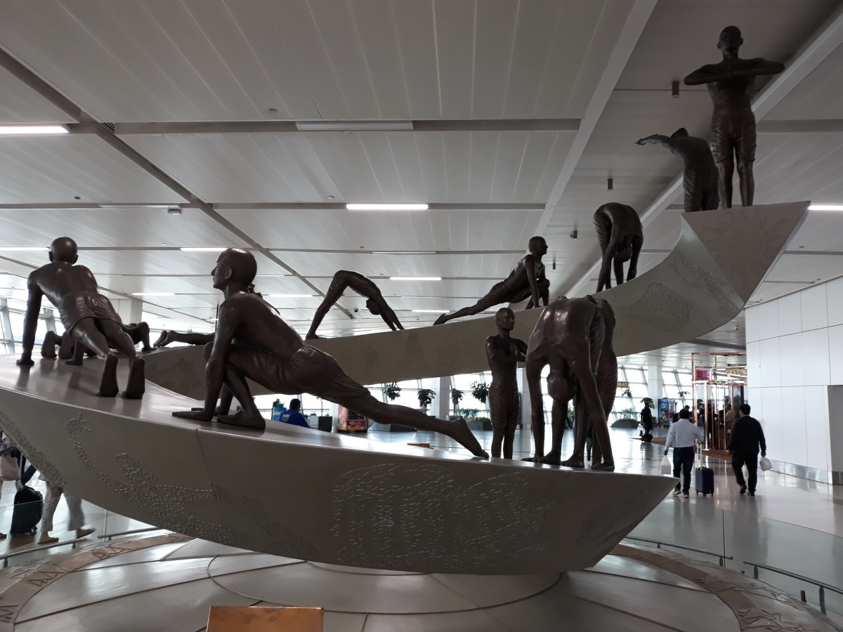 Na lotnisku w Delhi wita nas nowoczesna rzeźba z postaciami w kolejnych etapach powitania słońca. Strudzony podróżny z radością może odpocząć w pokoju jogi (nie trzeba nawet mieć własnej maty, są na miejscu). Joga w ciągu kilku ostatnich lat stała się najlepszym produktem eksportowym Indii. Można by powiedzieć, że nareszcie Hindusi zauważyli, jak ważnym elementem dla szeroko pojętego Zachodu stała się praktyka jogi.